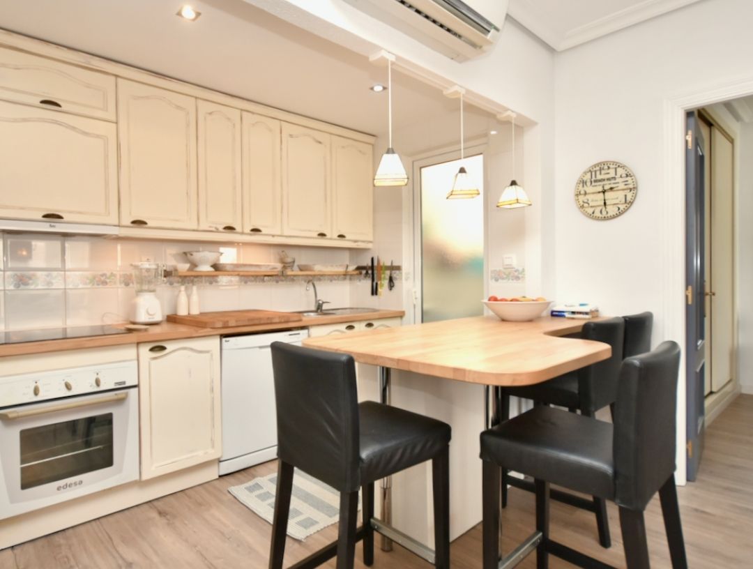 VT -496669 - A Casa Cisse es un apartamento renovado maravillosamente hermoso en la zona de Zeniamar de Orihuela Costa. En la planta baja hay una sala de estar, un dormitorio con una cama doble, un baño, una cocina abierta y un comedor. Arriba hay un trastero, un dormitorio con un sofá cama extensible y una terraza en la azotea con una parrilla para barbacoa y un toldo fijo. La dirección del aire del apartamento es oeste, por lo que el sol de la tarde calienta el apartamento cómodamente incluso durante los meses de invierno. El edificio tiene unos jardines impresionantes y una amplia zona de piscina.