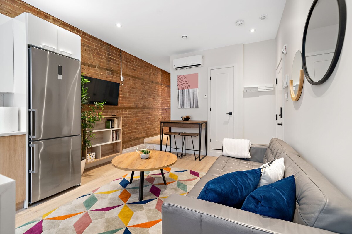 Vive la verdadera experiencia de Plateau en un apartamento tranquilo y totalmente renovado en la emblemática calle Saint-Denis. Con 2 dormitorios tamaño queen, 1,5 baños, una cocina moderna, wifi rápido y un espacio de trabajo dedicado, es perfecto para el trabajo o el ocio. A pocos pasos de cafeterías, tiendas, el metro de Sherbrooke y la avenida Mont-Royal, la base ideal para explorar la vibrante cultura de Montreal.