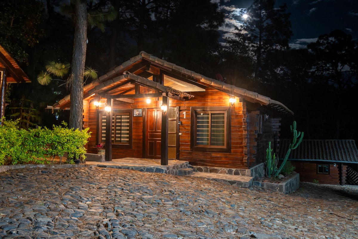 Relájate en este espacio tan tranquilo y elegante, Disfruta del encantador entorno de esta romántica Cabaña Prieta. Se encuentra ubicado a 5 km de la plaza principal, esta rodeada de enormes pinos, cuenta con acabados de lujo, Cocina equipada, Jacuzzi, Terraza con vista Panoramica, TV con sistema Dish. Todo lo necesario para que pases un agradable noche con tu pareja en la naturaleza.