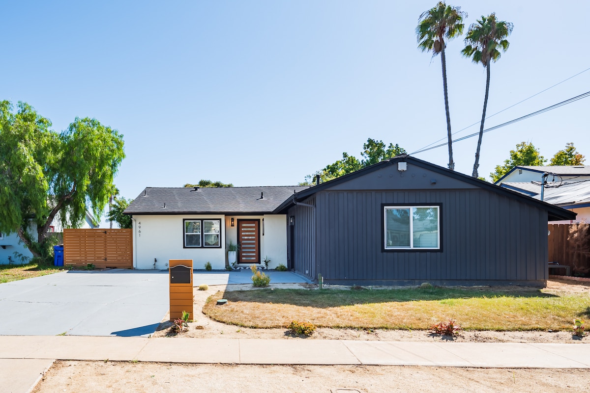 Completamente remodelado. A pocos minutos de muchas playas, la famosa cala y La Jolla Village. Esta casa cuenta con comodidades modernas y un increíble espacio al aire libre que incluye mesa de fuego, barbacoa y TV inteligente de 65 pulgadas. Cama tamaño king en la suite principal y camas tamaño queen en los otros dos dormitorios. Duchas a ras de suelo con múltiples cabezales y azulejos personalizados del suelo al techo. Sonido en todas las habitaciones y Smart TV en todas partes. Cocina gourmet y sala de estar interior/exterior completa con 5 puertas corredizas de vidrio y una pared de vidrio de apertura de 13 pies.