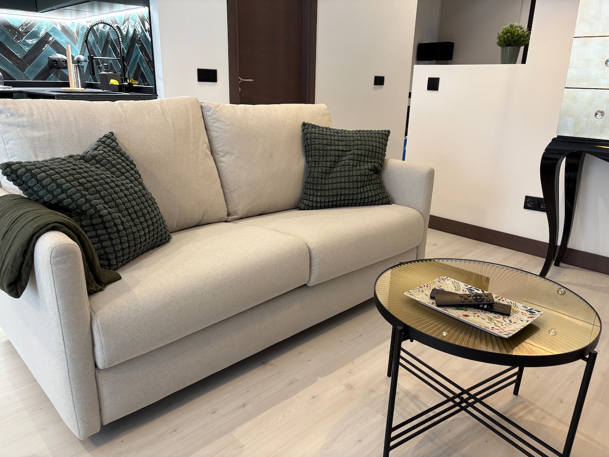 Suite moderna situada en pleno corazón de Madrid centro,entre el barrio la Latina y la plaza de cascorro (el rastro de Madrid) a 30m del metro “La Latina” 500m de “Tirso de Molina” y a 9 escasos minutos de la estación Atocha Renfe en coche (-2kms) hasta para 4 huespedes ya que cuenta con 1 cama de matrimonio,2 camas individuales mas 1 sofa cama y todas las comodidades que puedas necesitar recién reformada y hablitada. Wifi y Smart TV 55” Aire Acondicionado Chimenea Eléctrica Baño con ducha