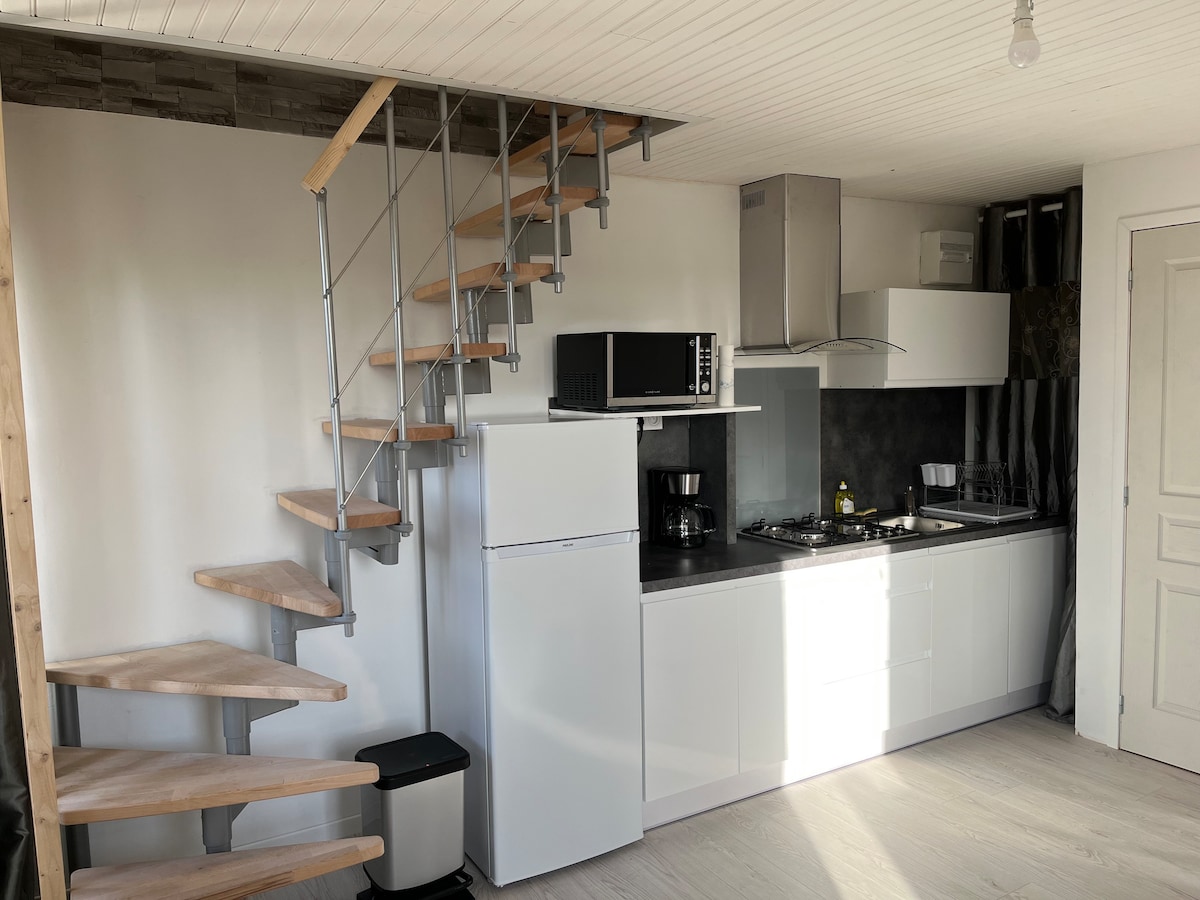 Studio de 17m2 au 1er étage en plein centre de St-Lô, à proximité immédiate de toutes commodités et services. Il est calme, orienté plein sud avec une terrasse partagée Equipements de base : -draps et serviettes -vaisselle -micro-ondes -frigo -bouilloire -wifi -parking gratuit en zone bleue dans la rue (2h), possibilité de parking gratuit et illimité plus loin (interdit de stationner dans l'impasse). Il se situe à 800m de la gare (10mn à pied) Accès à l'autoroute A84 en sortie de ville.