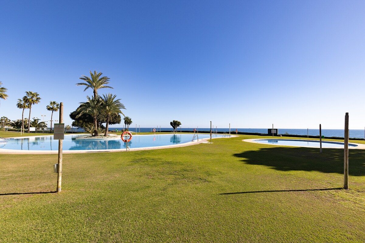 🏝Benalbeach🏖 Playa, piscinas, terraza, jardines.