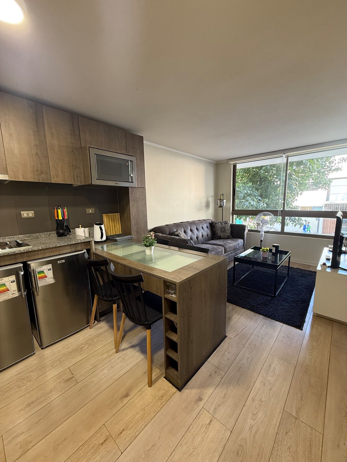 Welcome to your comfortable and modern stay in the heart of Santiago! This bright 1-bedroom apartment is perfect for couples, solo travelers, or remote workers looking to enjoy the city just steps from Plaza de Armas and the metro. ✨ What you’ll love: • Fast and reliable WiFi + dedicated workspace • Smart TV for your favorite apps • Fully equipped kitchen with coffee & tea station • 24/7 concierge • Smart lock (keyless entry) • Secure building • Private balcony with seating to relax outdoors