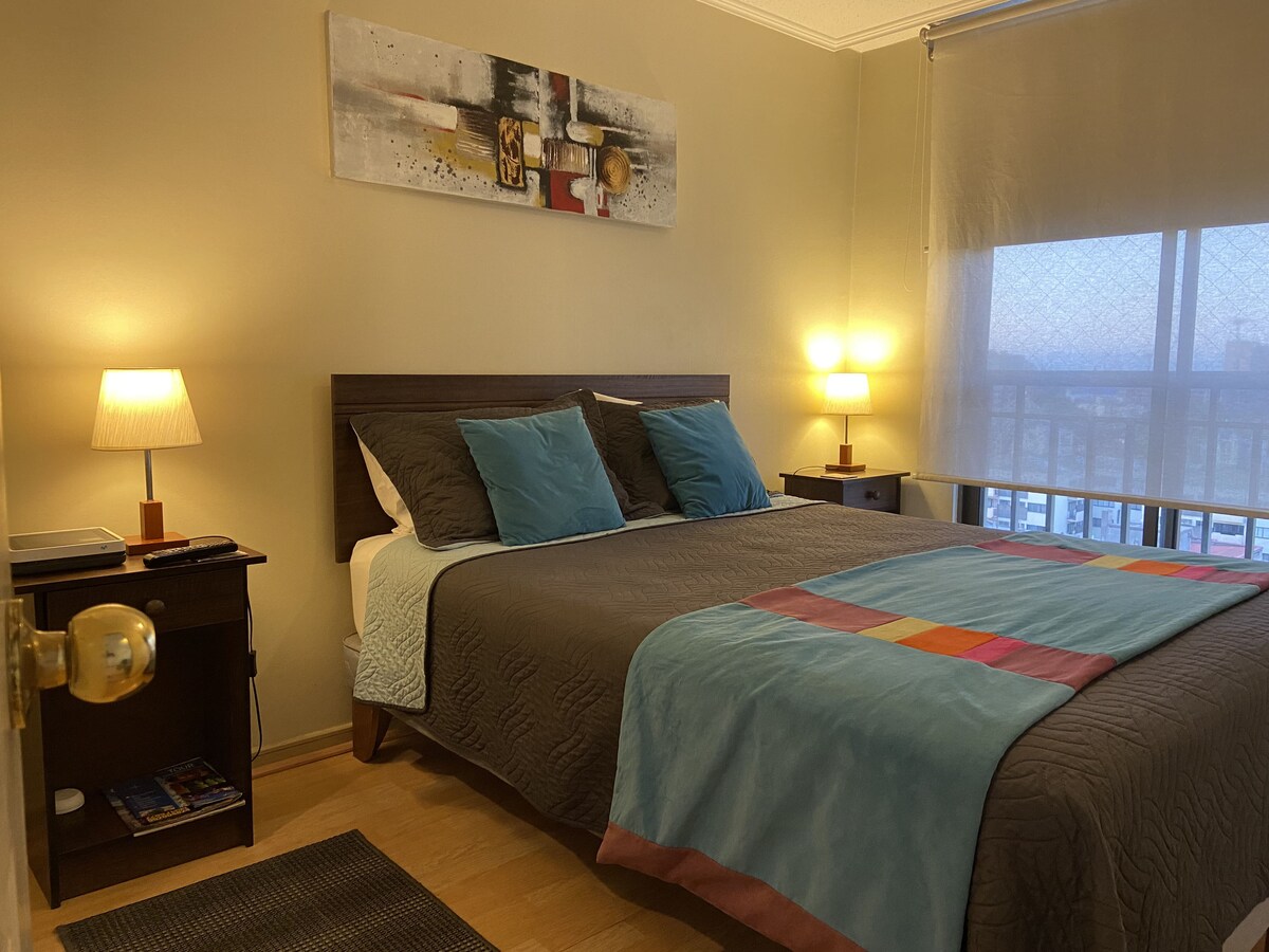 Confortable departamento ubicado en el corazón del barrio cívico. Cerca de museos, restaurantes, bares y entretención. Comfortable apartment located in the heart of the civic district. Close to museums, restaurants, bars and entertainment. It has the best connectivity with 2 metro stations just blocks away, buses to approach Santiago Airport and tourist centers with hiring services to iconic places of the city.