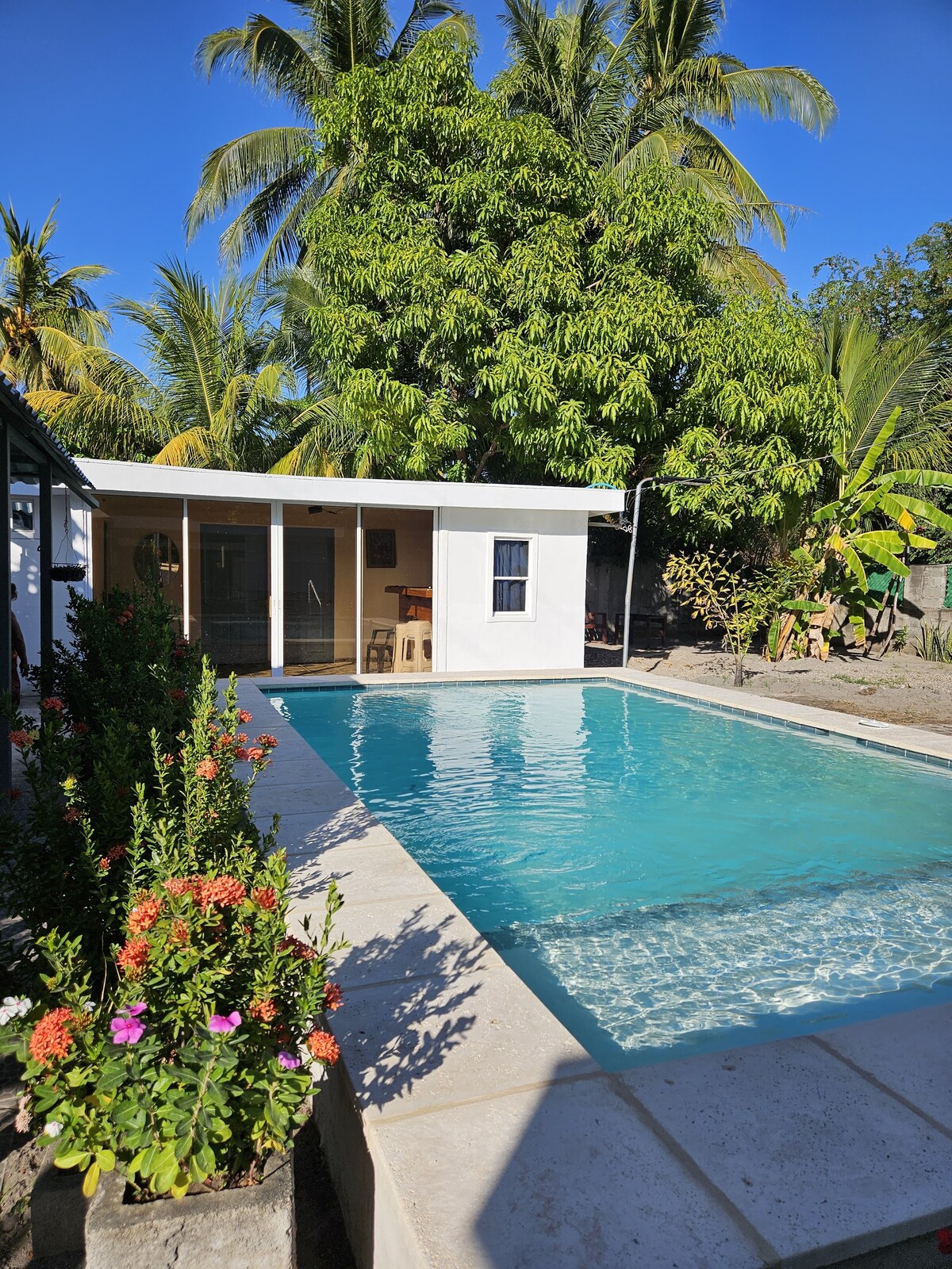 🌴Tropical ranch in Playa Las Hojas!🌴 ☀️ Upstairs suite with big balcony and pool view, A/C, ensuite & 3 queen beds ☀️ Separate villa steps away from pool with deck, ensuite, A/C & 2 queen beds 🍽️ Enjoy a full kitchen for home cooked meals, patio, BBQ 🏊 Pool (own risk, kids supervised), playground & huge 4000m² block with coconut & fruit trees. 🚗 Secure free parking 🌊 Just 1 min walk to the beach ✈️ 20 mins to airport & 45 mins to San Salvador 🆘 Always someone on-site to assist