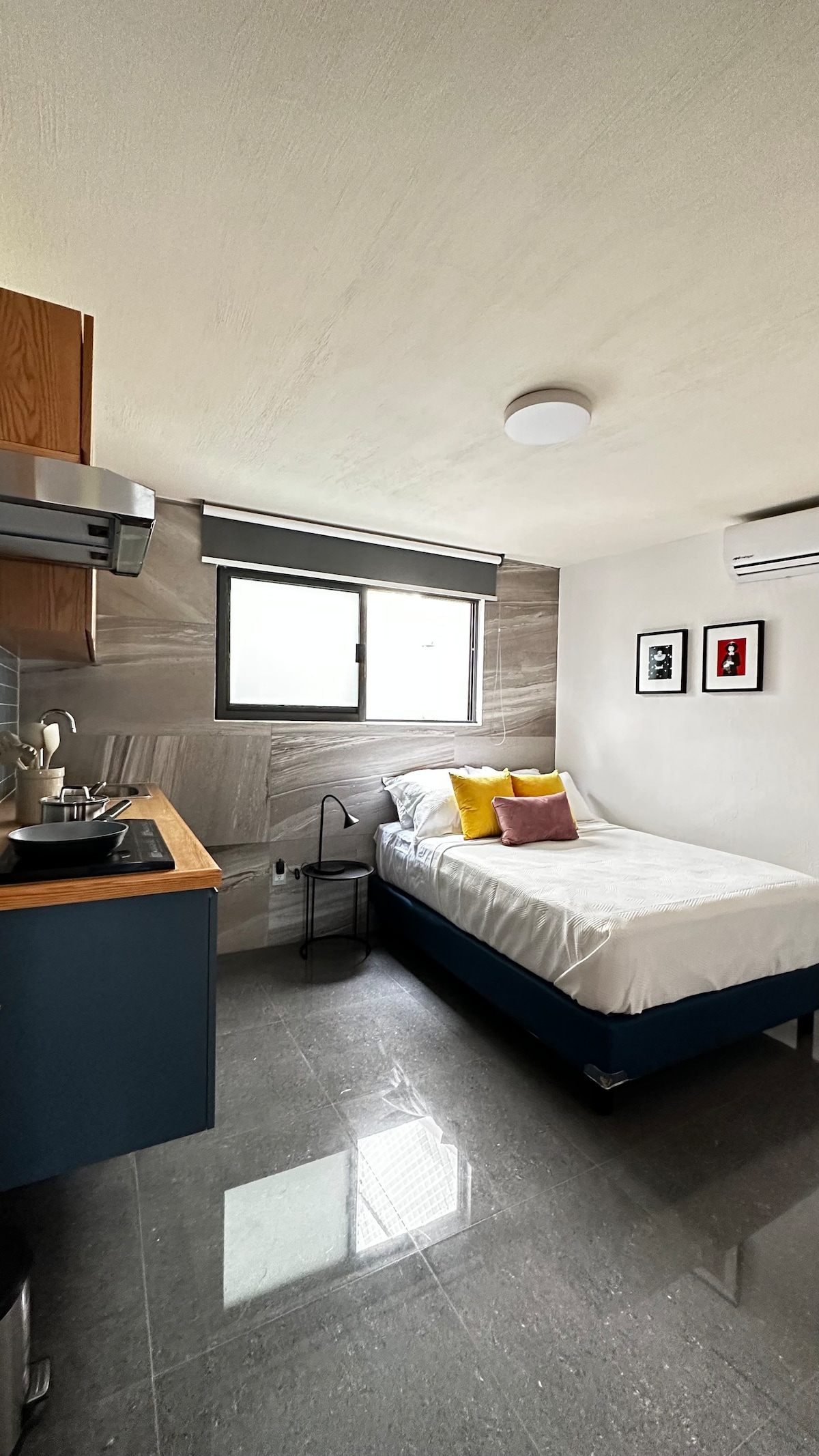 Disfruta de nuestros alojamientos diseñados especialmente para que tengas la mejor estadía en tu visita a Guadalajara. Es una propiedad recién remodelada, cuenta con 8 estudios y una agradable terraza. Nuestro estudio 9, cuenta con su amplio baño completo, una cómoda cama matrimonial , smart Tv y una cocineta equipada, con acabados de lujo. Espacios limpios y un diseño que te invitará a relajarte y descansar, además de disfrutar una de las mejores zonas de la ciudad.
