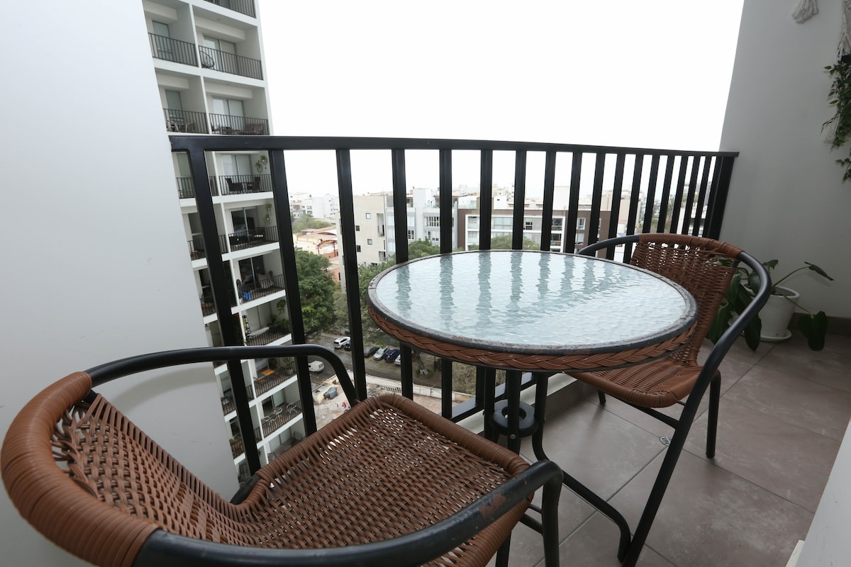 Gestionado por el equipo Vibrant ✨ ¿Buscas una experiencia única en el corazón bohemio de Lima? Descubre este penthouse en Barranco: un refugio moderno y lleno de estilo con terraza privada, vistas panorámicas y todo lo necesario para una estadía inolvidable. Perfecto para escapadas en pareja, viajes con amigos o una pausa para reconectar contigo mismo. ✨ Nos esforzamos en crear espacios 5 estrellas para que puedas relajarte, vibrar alto y disfrutar al máximo.