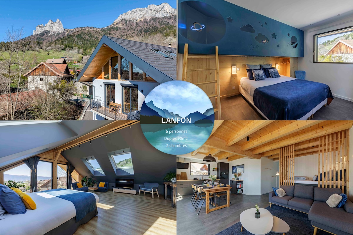 In a peaceful, rural setting, you'll be close to both the lake and the mountains, with easy access to all the region's leisure activities such as hiking, cycling, canyoning, and paragliding. Highlights of the accommodation: its large master suite upstairs, its bright and spacious living/dining room, its double bed on a raised platform, and the view of the Dents de Lanfon. New accommodation (available from summer 2024).
