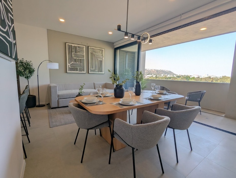 Disfruta de este moderno departamento junto al centro comercial Punto Sur. Este lujoso lugar ofrece una vista panorámica desde su balcón, y la alberca o la terraza panorámica con asador son ideales para relajarte. Cuenta con lo necesario para que te sientas como en casa: aire acondicionado, cocina equipada, estacionamiento subterráneo, elevador, y centro de lavado. Además, la decoración fue seleccionada por nuestra experta, dando un toque sofisticado y acogedor.