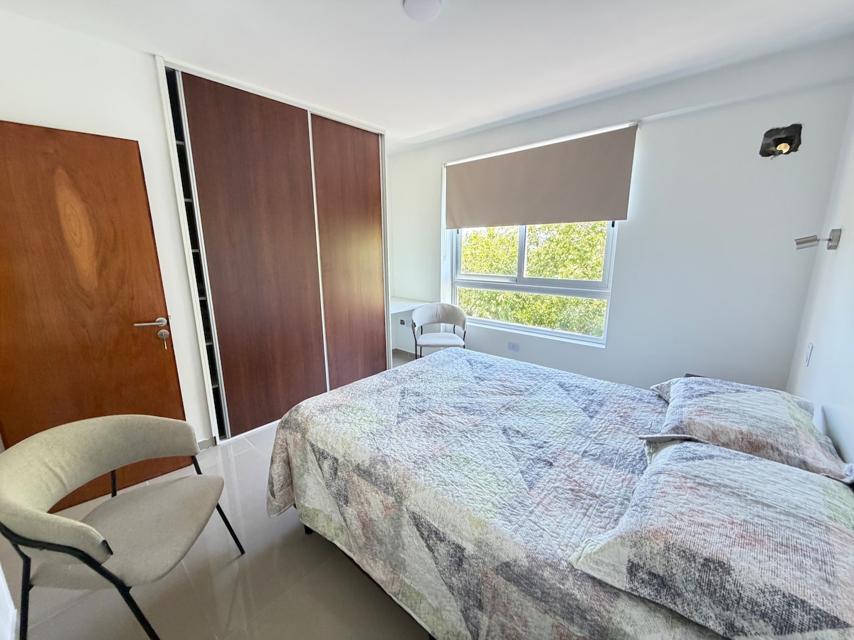 Departamento céntrico en San Juan Capital, totalmente equipado, con cochera techada. Ideal para parejas o viajes laborales. Excelente ubicación, cómodo, luminoso y con todos los servicios incluidos. Cochera techada incluida Sommier 2 plazas + black out Aire acondicionado Smart TV Cocina + lavarropas Todo cerca, sin usar el auto No fumar dentro del departamento No se permiten mascotas No se permiten fiestas o eventos Check-in y check-out según coordinación Cuidar el equipamiento y mobiliario
