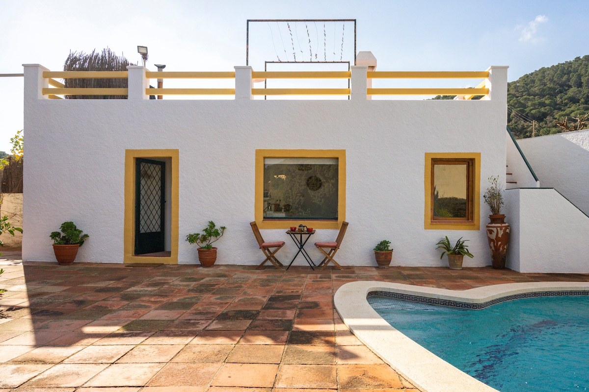 Espacio tranquilo, perfecto para relajarse o trabajar. Cómoda casa rural en el Montnegre y cerca del Montseny, totalmente renovada y con piscina en verano. Hay rutas para hacer desde la casa y el mar no está lejos. Al abrigo de una colina, lejos de la polución. Las estaciones de RENFE y la autopista están a menos de 10 minutos en coche. Wifi de alta velocidad gratuito. Aparcamiento amplio. Se admiten animales de compañía. El alojamiento tiene escaleras, por lo que no es accesible para PMR.