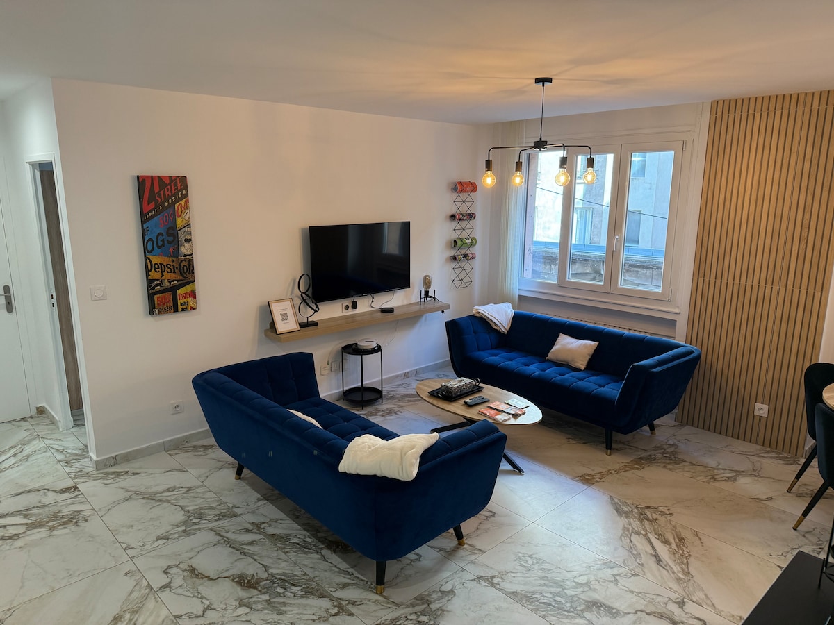 Venga a descubrir nuestro apartamento muy cerca del estadio Geoffroy Guichard en Saint Étienne. Disfrutará de un lugar agradable, espacioso y cómodo con una hermosa luz tanto por la mañana como por la noche. Ideal para una estancia con amigos, familia o viaje de negocios, este alojamiento tiene capacidad para 4 personas y un bebé.