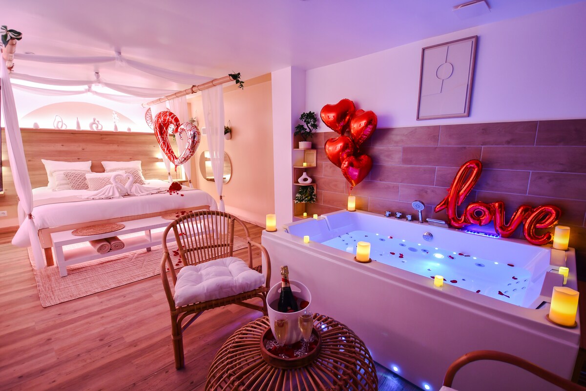 Cariño, ¡haz la maleta! Los niños están vigilados… ¡es hora de pensar en nosotros! ✨ 💞 ¿Reavivar la llama? 😍 ¿Encontrarse cara a cara? 🔥 ¿Un descanso lejos de la vida cotidiana? 💍 ¿Una sorpresa especial? ¡Estás en el lugar correcto! Un loft de 65m² para ofrecerle una burbuja fuera del tiempo con su mitad 💕 ✔️ Balneoterapia XXL ✔️ Cama baldaquín KING SIZE – Para noches reales Pantalla ✔️ doble gigante de 215 cm ✔️ Jardín íntimo ✔️ Prestaciones personalizadas 🍾 Champán gratis Eric #Le11enseyne