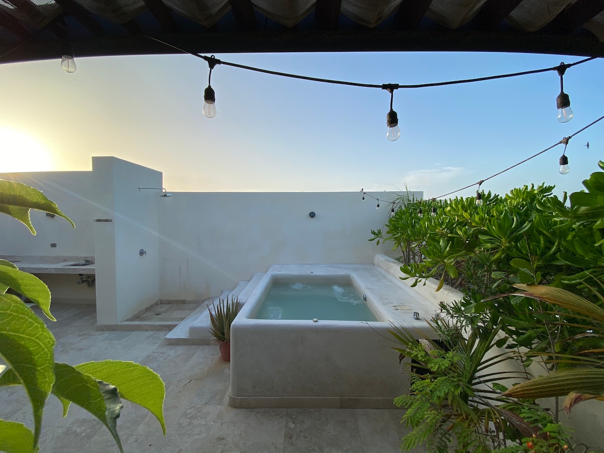 Jacuzzis y terraza privadas, piscina privada para relajarse en el roof garden y terrazas afuera de las areas de estar. Relájate en tu piscina privada, toma el sol desnudo y disfruta amaneceres y atardeceres. Descansa en tu cama king size con memory foam. Cocina equipada. 5min de la playa-1min del pueblo Renta de Scooter. Piscina y jacuzzi comunitarios. 150mt2 de espacio vivible, con otros 150mts2 de terrazas privadas. WIFI 200MB Edificio de 7años Gran luz natural Parking incluido Seguridad 24hrs