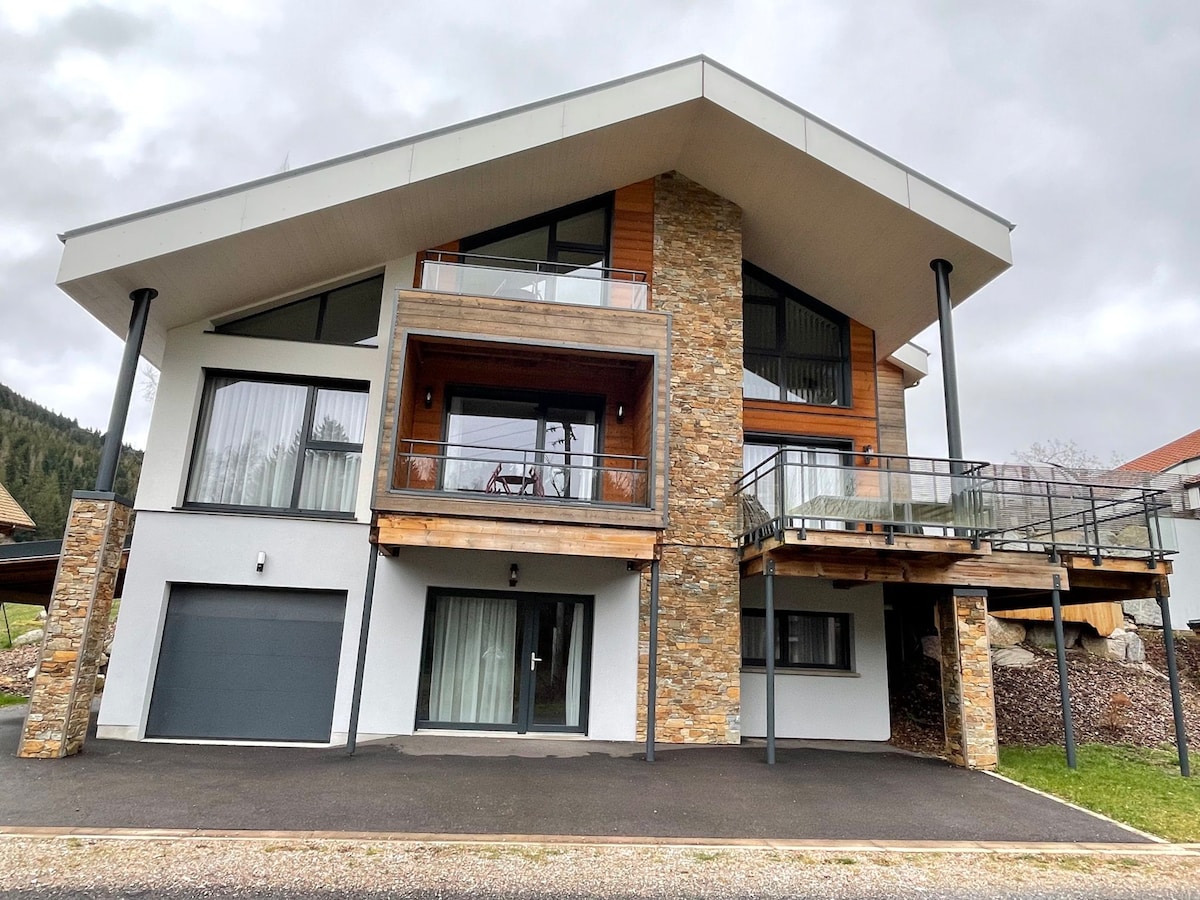 un sublime chalet tranquilo y a menos de 5 minutos del centro de gerardmer!! una creación hecha para valorizar el saber hacer de nuestros artesanos y poner las materias más bellas en primer lugar. se encontrará en una casa de lujo con terraza privada soleada y un spa privado disponible. en el borde del bosque, se puede disfrutar de una tranquilidad revitalizante y relajante. En las alturas de GERARDMER, disfrute de un corte para respirar, descansar en un entorno único y refinado.
