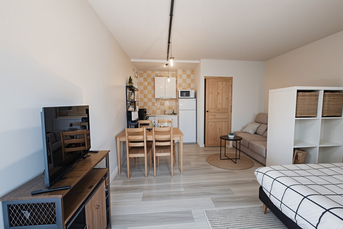 Acogedor estudio a 2 pasos del centro, de las pistas y del lago.