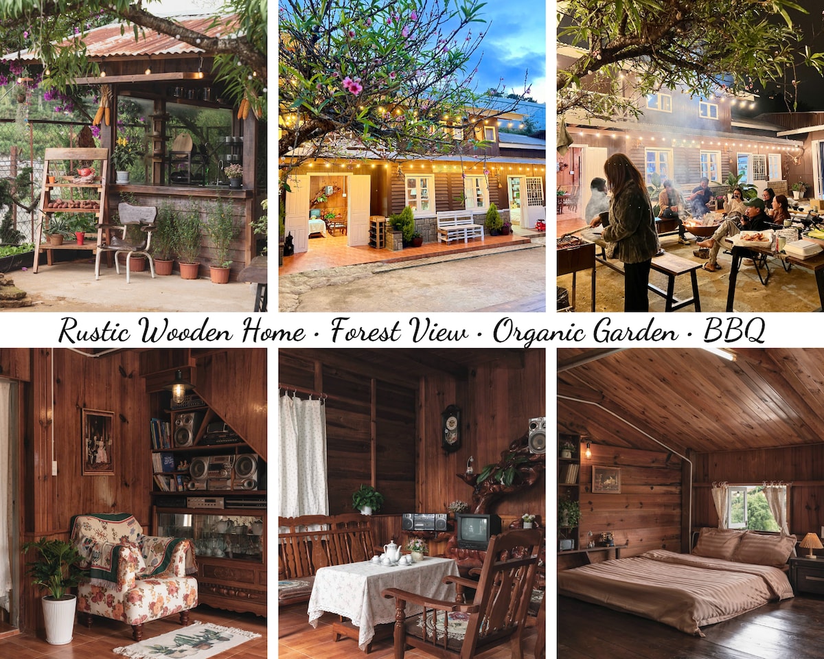 Nhà Gỗ Vintage • View Rừng • Vườn Rau • BBQ