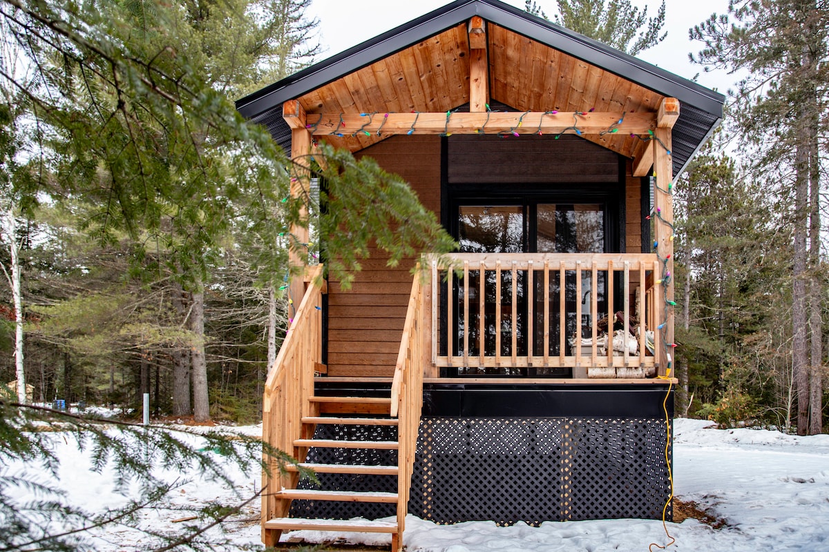 Nuestro chalet en el bosque nórdico es perfecto para pasar tiempo de calidad en pareja (o con un niño) o para un tratamiento de trabajo (con wifi de alta velocidad). El interior de madera es cálido y acogedor. Las ventanas de altura completa ofrecen unas vistas impresionantes sobre un valle boscoso. La cocina y la sala de estar de concepto abierto te mantienen en la conversación mientras cocinas. Si prefieres cocinar afuera, hay un fogón con parrilla y mesa de comedor al aire libre. A solo 70 minutos en coche de Montreal. El lago está a 25 minutos a pie si aparcas cerca.