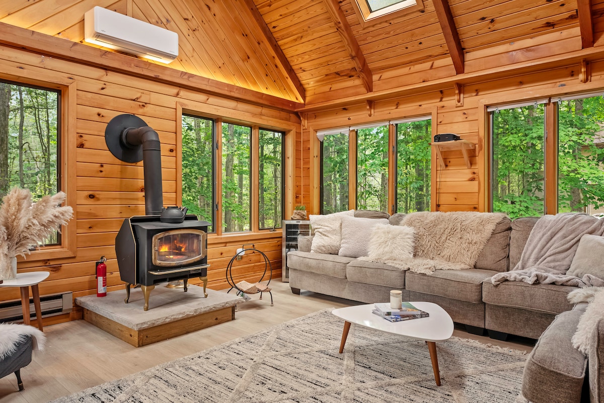Un impresionante chalet idealmente situado en las montañas Pocono. ¡Tu destino para una escapada de fin de semana o una estancia más larga durante todo el año! En el exterior se puede disfrutar de un entorno natural en una hermosa propiedad arbolada privada de 1 acre, jacuzzi, dos fogatas, una terraza para el café de la mañana o una deliciosa barbacoa. Nuestro alojamiento ofrece un ambiente interior tranquilo y está convenientemente ubicado cerca de todas las actividades de temporada de las montañas Pocono. Tanto si quieres relajarte como recargar energías, nuestro alojamiento es el refugio perfecto.