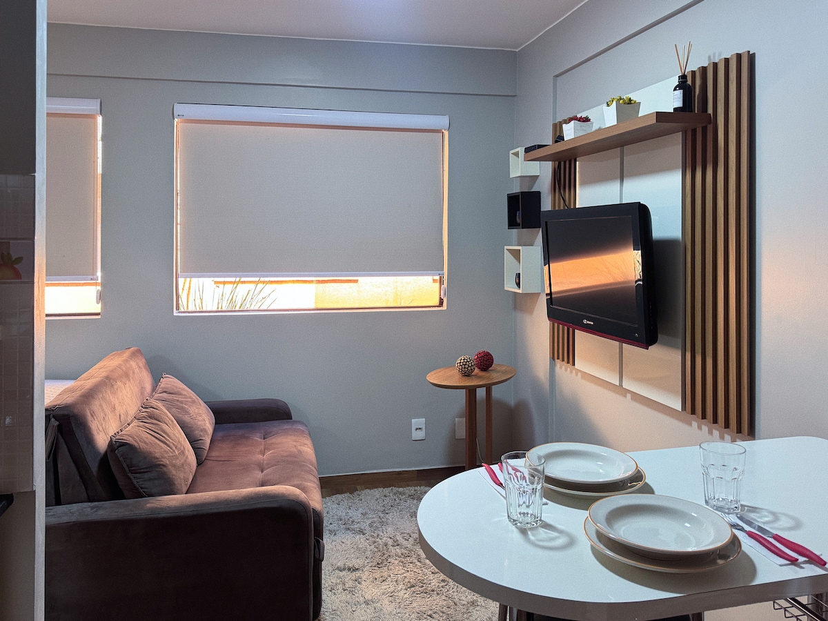 El apartamento está ubicado en la comercial 314 de Asa Norte (Plano Piloto), región central de Brasilia, tranquila, arbolada y segura. Situado a 4 km de la UNB, a 8 km de la Explanada de los Ministerios y de la Embajada de los Estados Unidos, y a 5 km del Estadio Mané Garrincha, el Estudio cuenta con aire acondicionado, dos Smart TV, cama doble queen size, 02 sofás cama, cocina completa, ropa de cama y toallas de baño, con capacidad para 04 personas cómodamente. Las fiestas están prohibidas.