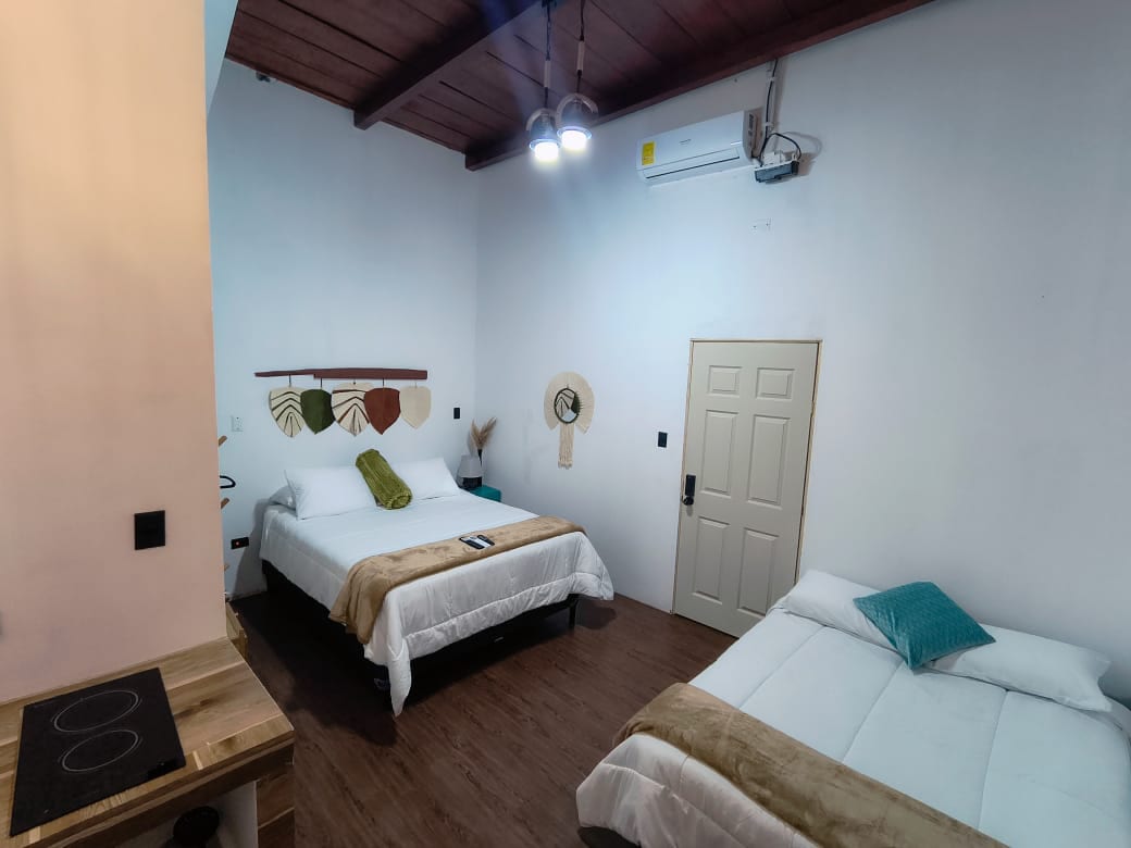 Disfruta del fácil acceso al Aeropuerto Internacional Mundo Maya, Centro Comercial Metroplaza Mundo Maya, restaurantes populares, mercado, Isla de Flores y otras atracciones turísticas; desde este encantador lugar para hospedarte. Este apartamento está en primer nivel, fácil acceso, 2 aires acondicionados, cómodo, con cocina-sala-comedor equipada para 4 personas, 1 dormitorio con 2 camas matrimoniales, baño completo privado, parqueo dentro de las instalaciones, lavadora y secadora común.