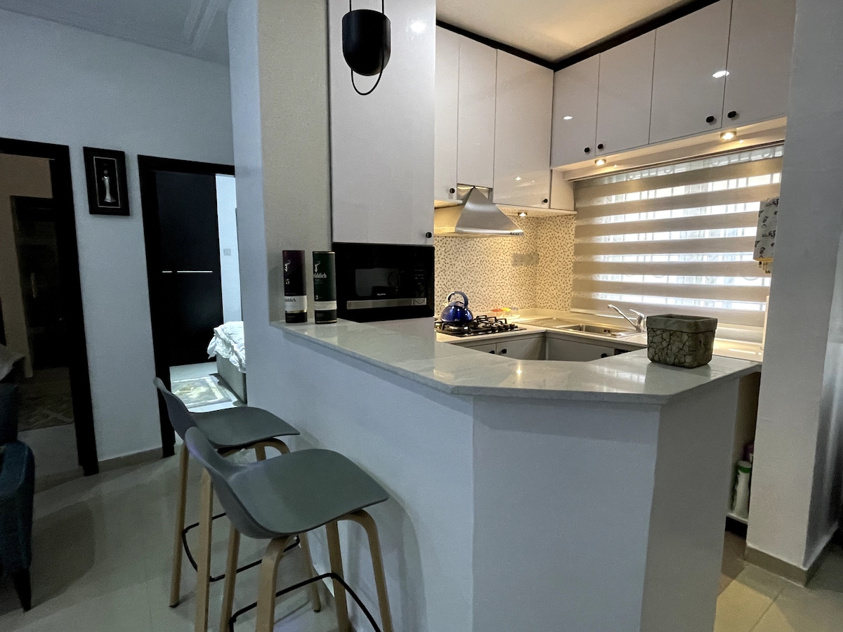 Relax with the whole family at this peaceful and luxurious 2-bedroom serviced apartment located in the serene enclave of the Akin Leigh environment off Admiralty Way, Lekki. This tranquil, tastefully furnished 2 bedroom apartment embodies the perfect blend of modern architecture, state-of-the-art appliances and breathtaking vistas with finishing that were thoughtfully considered. The apartment is equipped with Super Fast Wi-Fi (Fibre Optics), 24x7 power & 24x7 private security