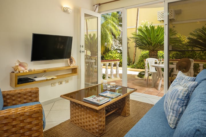 El apartamento «La casita» fue construido especialmente para alojar a los huéspedes que visitan Cabarete y forma parte de una casa más grande; una joya escondida ubicada en un jardín tropical «secreto». Este acogedor apartamento de 1 dormitorio con toques de estilo cubano tiene su propio patio y da a un jardín tropical. El apartamento tiene un dormitorio, un baño separado, una cocina y un comedor; perfecto para una sola persona o una pareja. Se encuentra en una comunidad cerrada y a 5 minutos a pie de la playa y del centro.