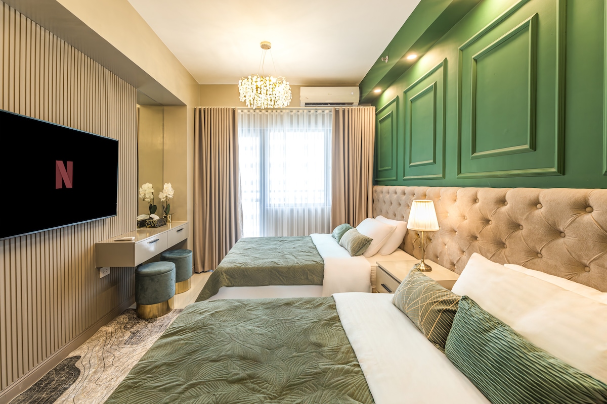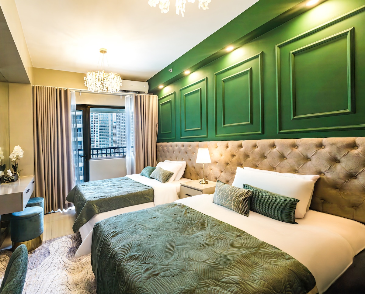 ¡Bienvenido a su acogedor refugio familiar en Uptown BGC! Esta espaciosa unidad de 1 dormitorio cuenta con una cama tamaño queen, sofá cama, sofá adicional, cocina totalmente equipada, wifi rápido y mucha luz natural, perfecta para familias o huéspedes que trabajan desde casa. Disfruta de un fácil acceso a Uptown Mall, Mitsukoshi, Landers y lugares de interés como Bonifacio High Street, The Mind Museum y Burgos Circle, ¡todo a un corto paseo de distancia!