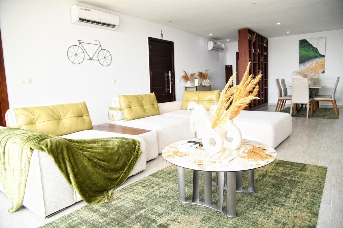 Idealmente situado en el corazón de Abiyán en la Riviéra Golf, este hermoso apartamento moderno le dará la bienvenida tanto para una estancia profesional como personal. Los grandes espacios y todas las comodidades han sido pensados para que pueda pasar un rato agradable mientras se siente como en casa. Con la ventaja adicional de un rooftop para admirar tranquilamente la puesta de sol. Panadería, banco, supermercado y muchos servicios a menos de 5 minutos. Fácil acceso a la meseta, a Marcory, Cocody...