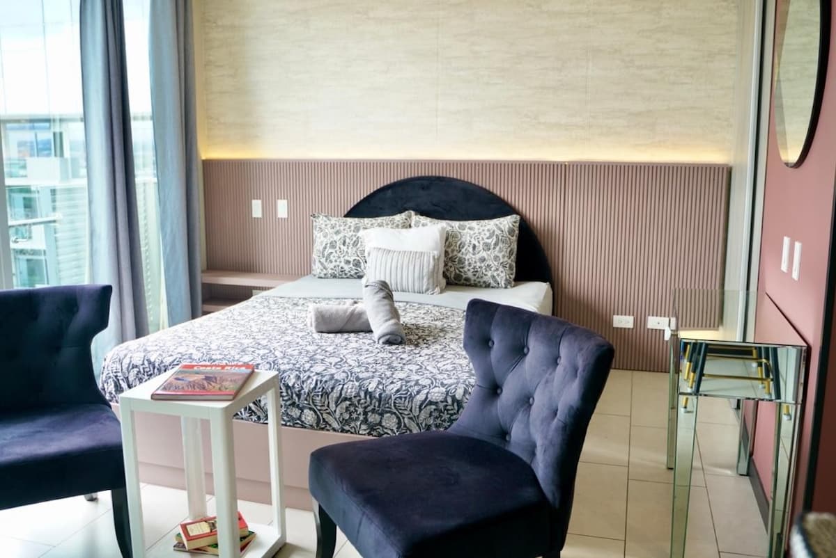Da un paseo matutino por el parque antes de regresar a tu apartamento industrial de 2 dormitorios con ubicación céntrica que te dará la bienvenida con wifi de alta velocidad, electrodomésticos de cocina de primera línea, una decoración increíble, camas cómodas y vistas al atardecer desde un piso 12 con vistas a la ciudad. No solo tendrás acceso a servicios inigualables como una piscina semiolímpica, saunas, gimnasio y espacio de coworking, sino que también estarás a poca distancia a pie de los mejores restaurantes, cafeterías y tiendas de comestibles de la ciudad.