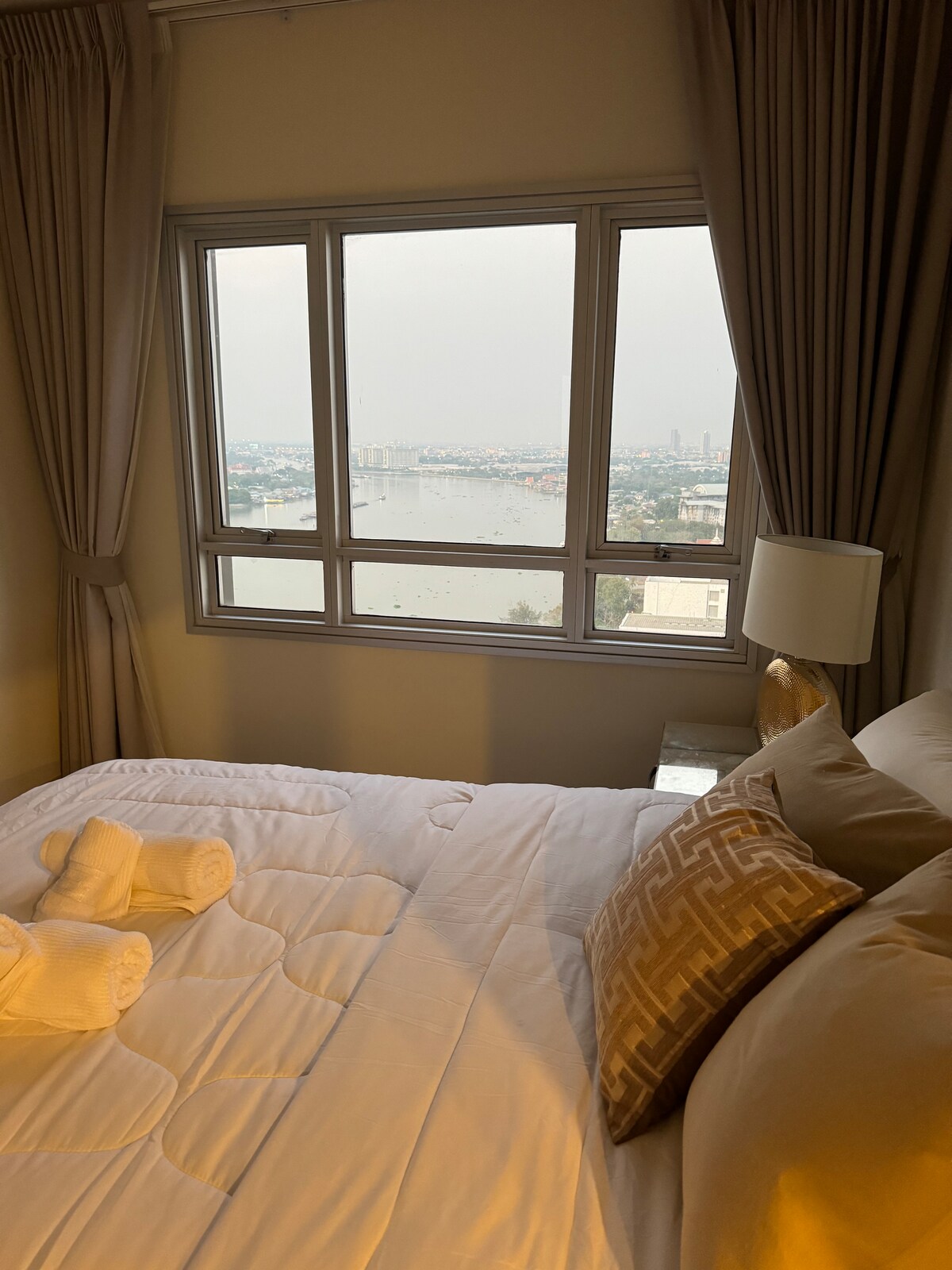 La estancia con las vistas más bonitas del río Chao Phraya. Instalaciones de hasta 3 piscinas con nuestra exclusiva piscina infinita con impresionantes vistas al río Chao Phraya. Gimnasio en la parte superior de la piscina Sky Pool con impresionantes vistas al río también. Casa club con sala de juegos, espacio de coworking, piscina con jardín frente al mar. Tipo de habitación: 1 dormitorio, 1 sofá, 1 sala de estar, 1 baño, 1 cocina pequeña con un tamaño de 32 metros cuadrados. Vista: balcón en el dormitorio y zona de cocina con vistas al río Chao Phraya.