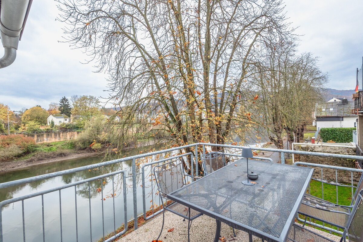Relájate ahora en Lahnstein La comodidad de un hotel boutique se une a la libertad de un apartamento vacacional. Nuestro elegante apartamento, inundado de luz, está situado directamente en el Lahn, tranquilo, con fantásticas vistas y a solo unos minutos de Koblenz. El apartamento de 70 m² en la planta baja tiene capacidad para 4-5 personas, ideal para familias, ciclistas, amigos y entusiastas del aire libre. Disfruta de tu café de la mañana en la gran terraza o termina el día relajándote en la acogedora sala de estar.
