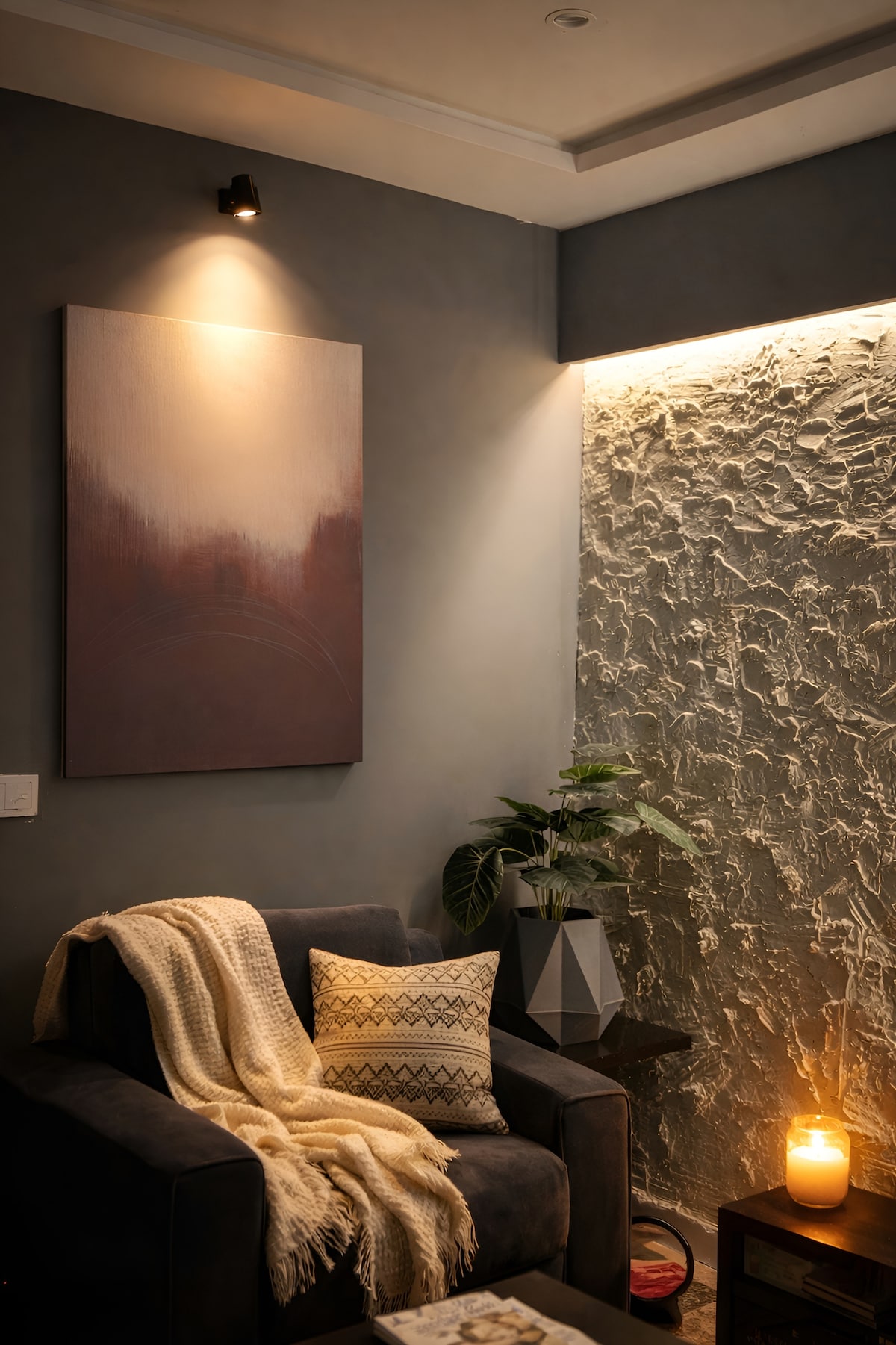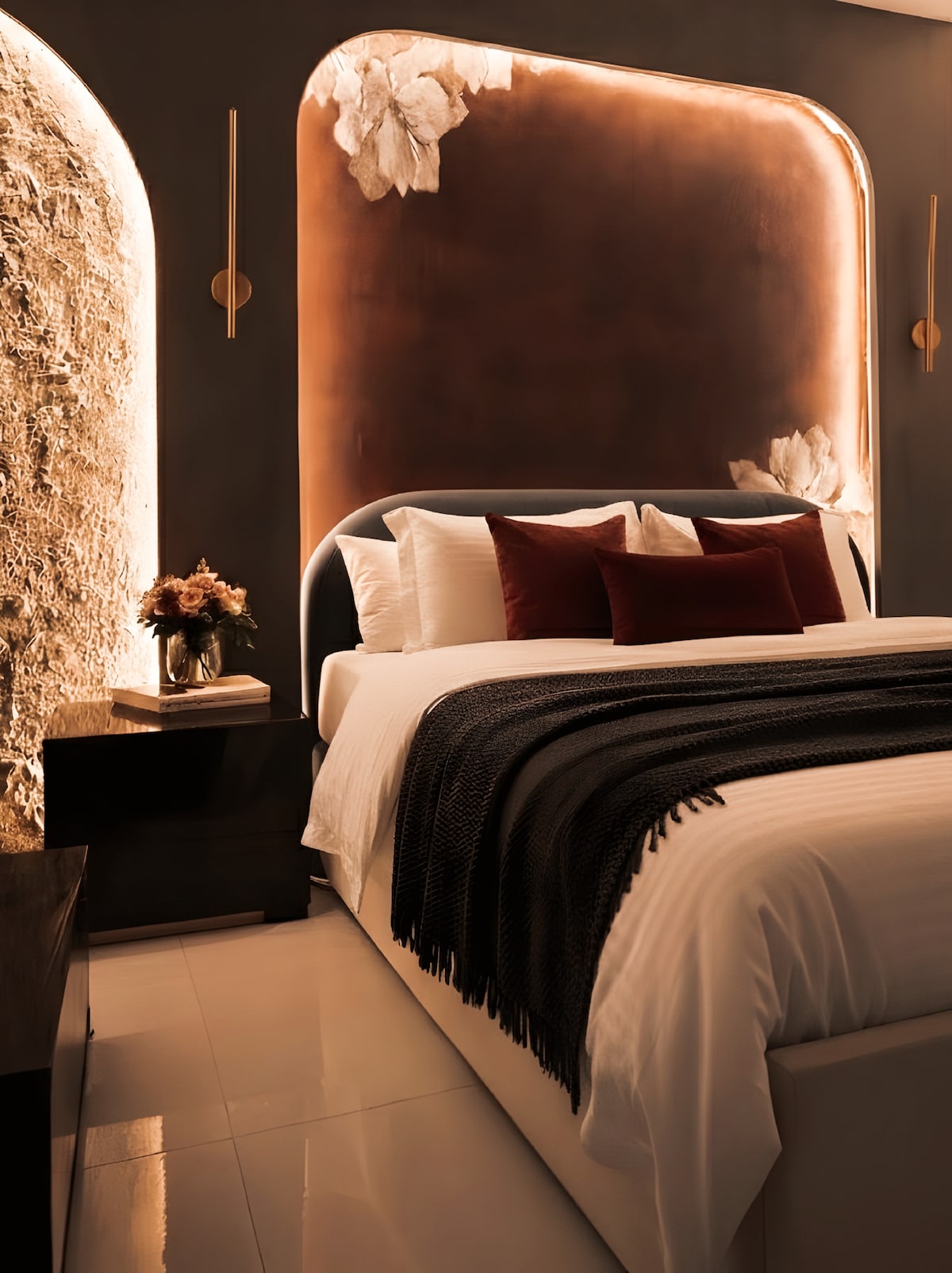 Our 1 BHK Orbit Penthouse in DHA Phase 5 is where urban chic meets celestial cool. Think: a glowing moon wall for those late-night selfies and a bold dollar-stacked art piece that screams "main character energy" Wake up to park views from your private balcony swing, binge your faves on the 50" 4K Smart TV, or cook up something aesthetic in the fully loaded designer kitchen. The interiors? Abstract, stylish, and made for the feed. Plus, you're right next to Lahore's hottest dining spots.