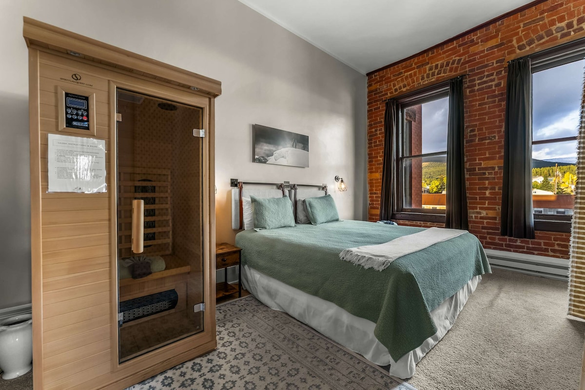 ¡Ubicado en el tercer piso del edificio histórico de Leadville, disfruta de las vistas a la montaña más increíbles que Leadville tiene para ofrecer! Estarás a poca distancia a pie de los mejores restaurantes, bares y atracciones de Leadville. A menos de una hora en coche de las mejores pistas de esquí y rutas de senderismo que Colorado tiene para ofrecer. ¡Ski Cooper y Copper Mountain están cerca y son perfectos para actividades de nieve esta temporada! Gestionado por: @TraverseHospitality