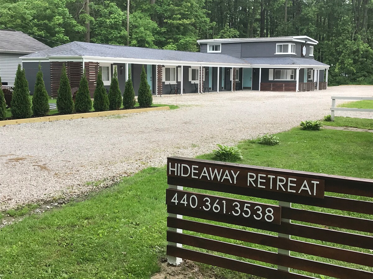 ¡Ahora ofrecemos estancias de 1 noche! ¡Ubicado en Geneva-On-The-Lake, la ciudad turística más antigua de Ohio con mucha historia y atracciones únicas! Camina hasta el lago Erie y la famosa «Strip». Este albergue de la década de 1950 está siendo renovado y reimaginado en el primer motel boutique temático de registro automático de Geneva-On-The-Lakes, ¡donde cada habitación es una experiencia única! Cada habitación tiene un estilo diferente, todas con toques personalizados y de diseño en todas partes.
