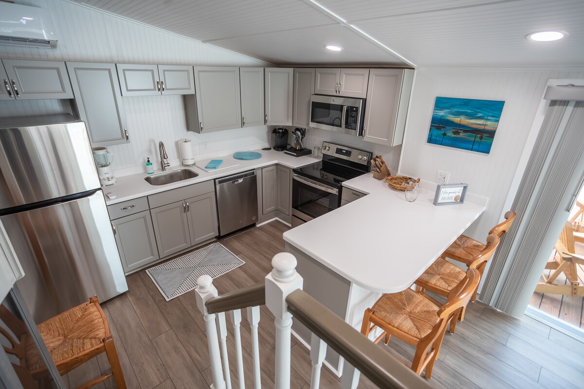 ⭐COMPLETELY REMODELED & BEAUTFULLY FURNISHED RANCH-STYLE HOME.⭐Enjoy the serenity of your own private space with scenic and sunset views☀️, outdoor entertainment area and still ONLY 5 Minutes from the beach🏖️ , restaurants, bars, shopping and entertainment. ➡️PLUS, A 6-PERSON CAMPER (seasonal April- October)! 🚙This one-of-a-kind home and camper combo is perfect for a family getaway, fishing trip or any reason to escape and relax.