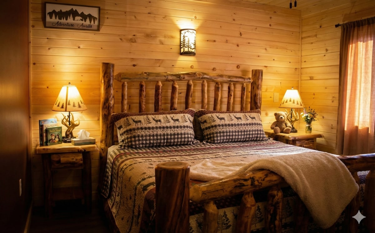 Escápate a tu refugio privado en Adirondack. Este cálido estudio King con revestimiento de madera en Lake Haven combina acabados rústicos de madera con una acogedora bañera de hidromasaje para dos, además de una cocina pequeña para desayunar en la cama por las mañanas. Sumérgete bajo una suave iluminación en tu bañera de hidromasaje privada, toma un café en tu cocina americana y relájate en la comodidad de Adirondack, a pocos pasos del comedor y del lago. Perfecto para parejas que buscan comodidad, encanto y acceso a pie a Lake George Village, sin precios de resort.