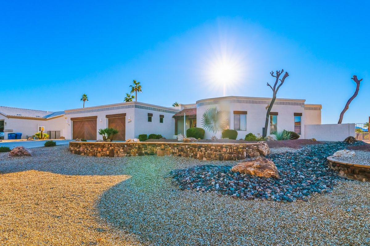 ¡LAKE SIDE OF THE HWY... y una de las ubicaciones más solicitadas de Havasu! Hermosa casa de vanguardia con casi 2000 pies cuadrados de hermoso espacio habitable mejorado que incluye 3 dormitorios, 2 baños, cocina abierta y un gran diseño de habitaciones. Suelos de travertino, encimeras de losa de granito, armarios/cajones de cierre suave, esta casa superará tus expectativas. Patio trasero privado con nueva piscina de gunita, 2 fuentes de agua, suelos de patio/terraza de travertino, paisajismo profesional. Envíame un mensaje y te enviaré un vídeo de la propiedad.