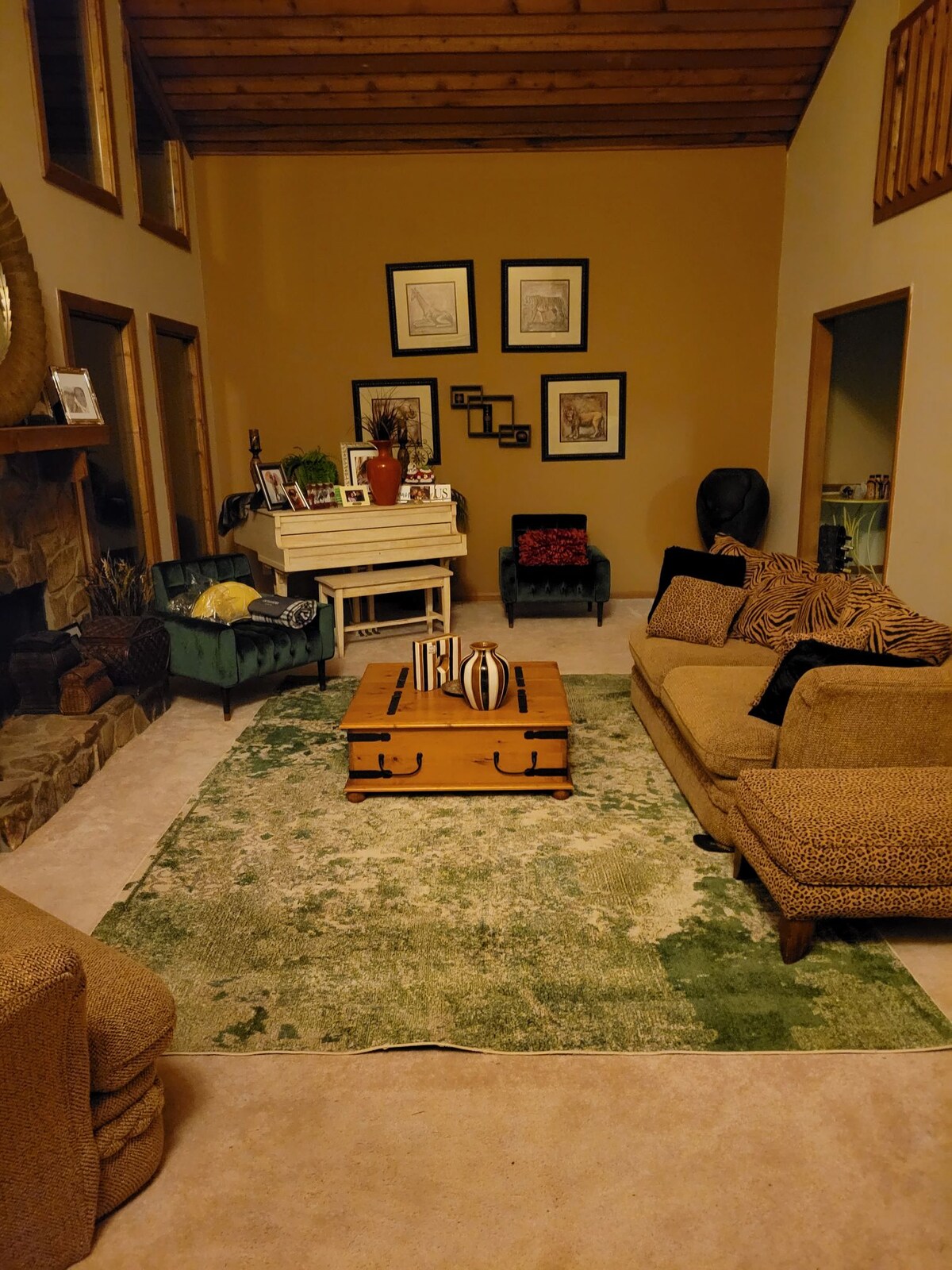 Gorgeous “YELLOWSTONE “ type custom 3 large bedrooms w/private baths surrounded by beautiful valley, natural meadows, trout stream, spring fed lake and forested farm, ranch land to explore. Fish or tube on the stocked trout stream. Kayak, canoe or float in the spring fed lake in the front yard with a swing and cooking firepit. Watch HORSE , chickens, and deer free grazing around the house and barn area just steps away: Visit Fiona our horse at the barn or she may visit you when grazing