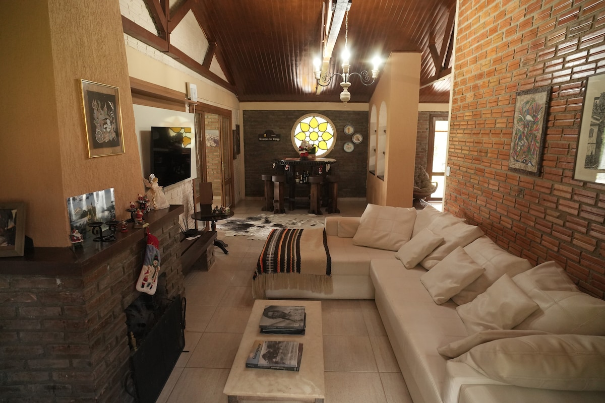 ¡Retiro exclusivo en Entre Ríos, PR! Un encantador chalet de tres pisos con jacuzzi y vistas impresionantes a la naturaleza. El espacio ofrece dos dormitorios con camas dobles y un sofá cama en la sala de estar. Los huéspedes son recibidos con una pequeña cesta de desayuno de cortesía, un detalle para hacer que la estadía sea aún más especial. Perfectamente ubicado a solo 10 minutos de las colonias alemanas, museos y cascadas, y a 15 minutos de Guarapuava. Estacionamiento al aire libre disponible en el área del jardín.