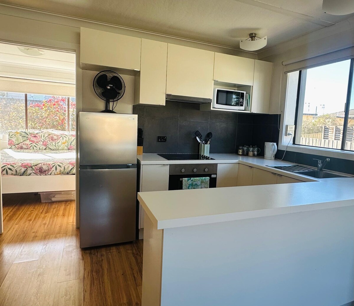 ¡Después de un descanso de 2 años, hemos vuelto! ¡Un estudio de estilo boutique con el lujo de una silla de masaje! A solo unos minutos a pie de la playa de surf, una nueva cafetería, fish&chips, tienda y lavandería. A 20 minutos a pie de la calle principal con tiendas y restaurantes. A poca distancia en coche de la plataforma de avistamiento de ballenas y del hipódromo. Una pequeña cocina, baño y patio privado ~ entrada independiente desde el aparcamiento gratuito ~ cama tamaño queen + sofá cama doble ~ capacidad para 4 personas. Ideal para solteros, parejas, familias jóvenes pequeñas o fines de semana de chicas. Desayuno y artículos de aseo gratuitos.