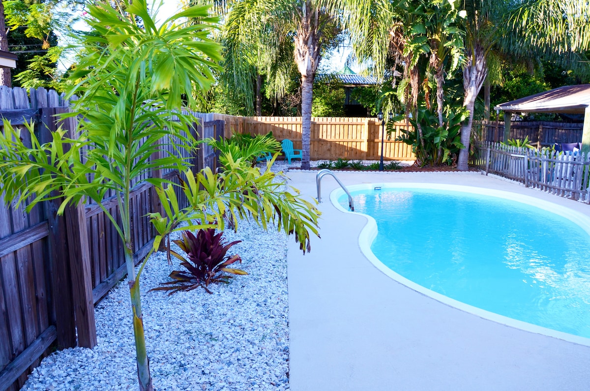 Your poolside paradise awaits in coastal Palm Harbor. With lush, tropical gardens and a vibrant downtown steps away, you may not want to leave, but you are also a few short minutes from Honeymoon Island beach and the best of Dunedin, Tarpon Springs and Clearwater Beach. [As of Oct. 2022: The pool has been completely resurfaced]