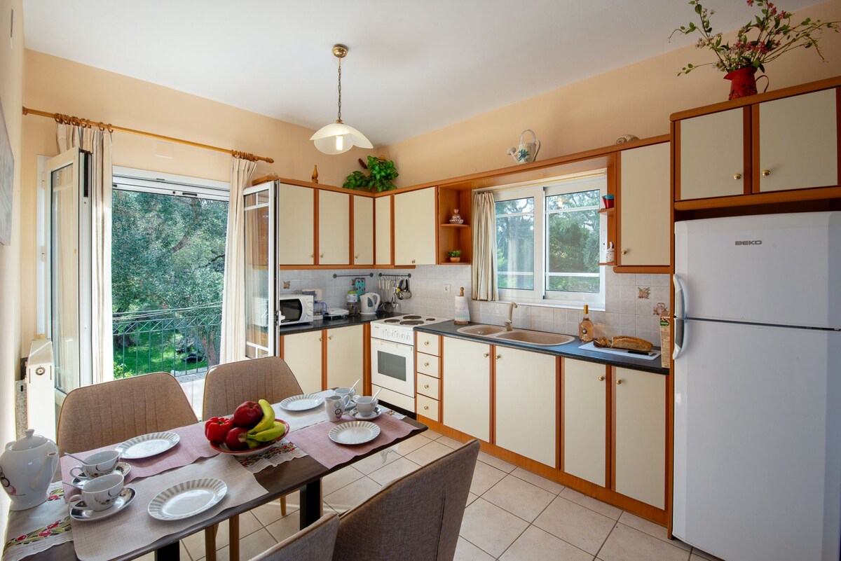 Villa Christina es una villa tradicional con gruesas paredes de piedra situada en una zona idílica, rodeada de olivares y a unos 5 minutos a pie del pintoresco pueblo de Lakka o la playa Harami y Kanoni.