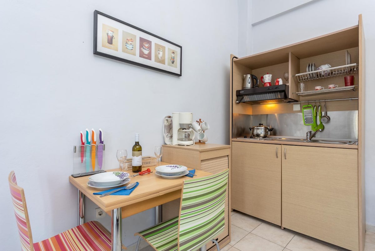 El estudio se encuentra en el pueblo de Lakka, en la parte norte de la isla de Paxos. Lakka es un pequeño puerto pintoresco a 2 minutos. También hay dos playas maravillosas a unos 5 minutos a pie. A 2-3 minutos a pie se pueden encontrar tabernas, cafeterías, tiendas turísticas, supermercado/minimercado, cajero automático, etc. Los huéspedes deberán subir unos 25 escalones para llegar al apartamento. Por este motivo, no se recomienda para personas con problemas de movilidad.