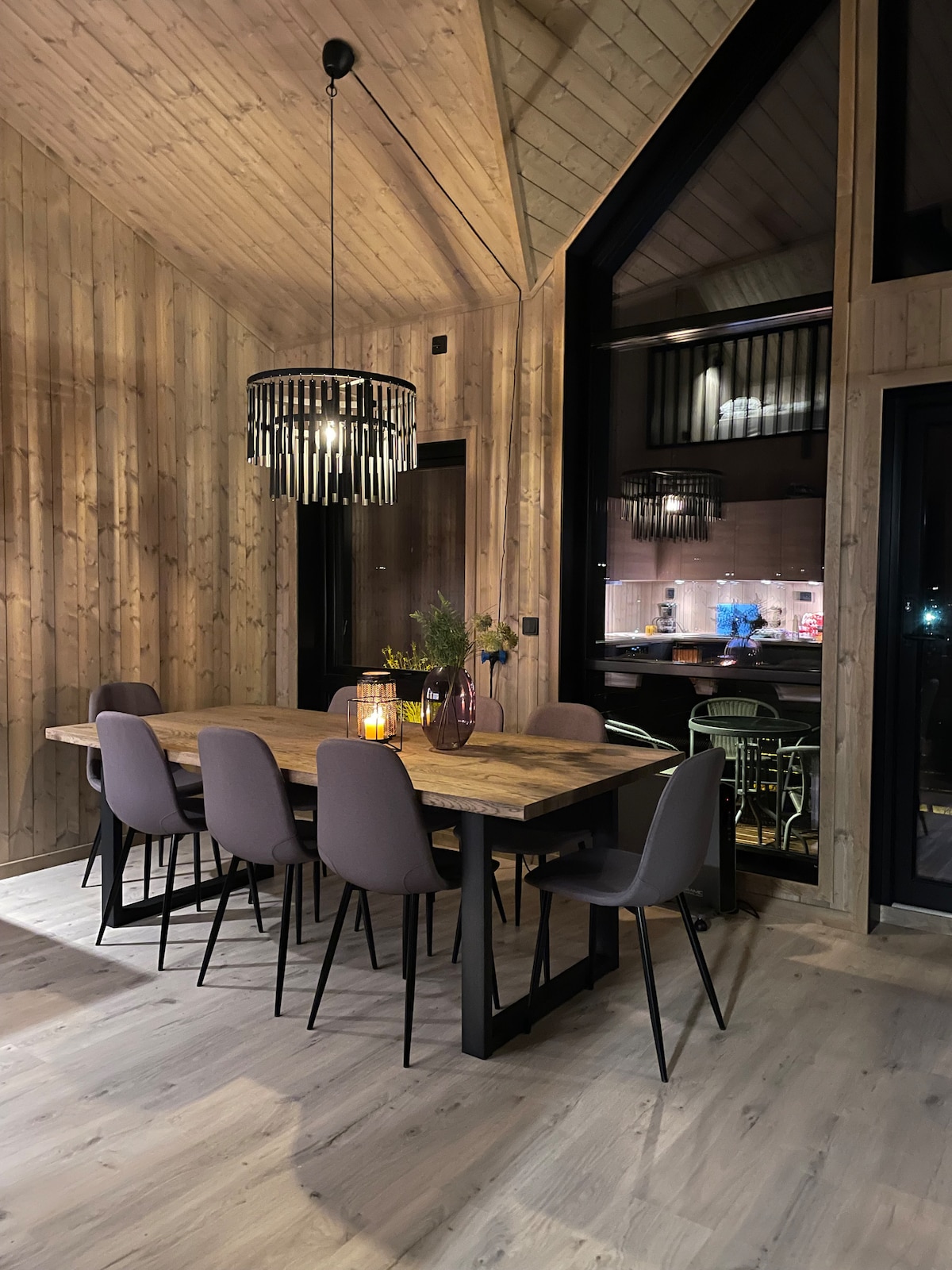 Cabaña de madera de nueva construcción de unos 75 m2 con gran terraza. Sala con sofá, silla y cocción de leña. Cocina con horno, lavavajillas, nevera y comedor acogedor. Habitación grande con cama matrimonial. Cama de bebé en un dormitorio pequeño. Loft grande con dos habitaciones y cuatro colchones. Baño con jacuzzi. La cabaña tiene una gran vista hacia la parte superior de Lakselvas. Carretera hasta el final. La cabaña no tiene TV ni wifi, así que aquí tienes paz. Podemos ayudarte a dar consejos sobre lugares de interés, viajes y recomendaciones en general.