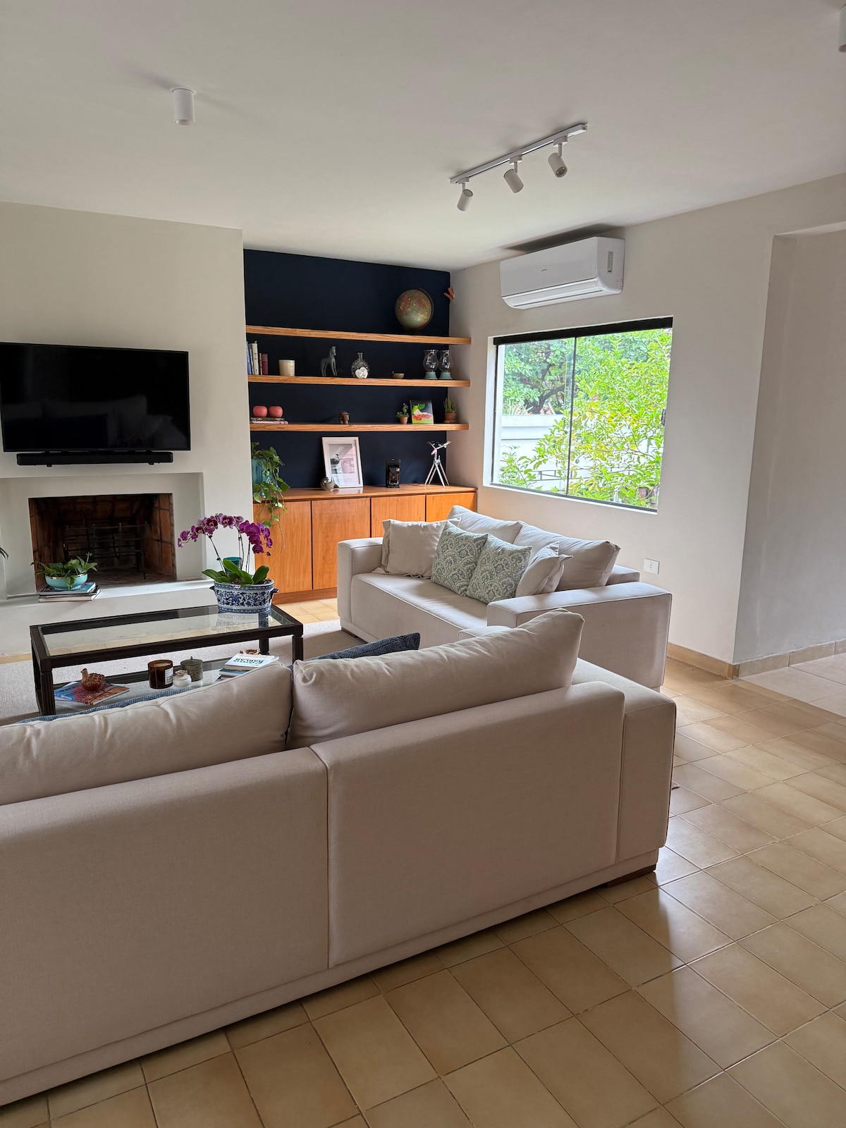 Acogedora casa para 5 personas ubicada en Asunción SOHO. Cerca de diversos locales gastronómicos, a pasos de la Quesería Las Mercedes. Comedor principal para 7 y sala integrados, ambientados con decoración de madera, antigüedades y una chimenea. Sala adjunta con sofá para ver TV. Patio trasero con parrilla. Garaje para 1 auto. Amplia cocina equipada con un comedor para 5 personas. Además, área de lavandería con lavarropas, plancha y tendedero.