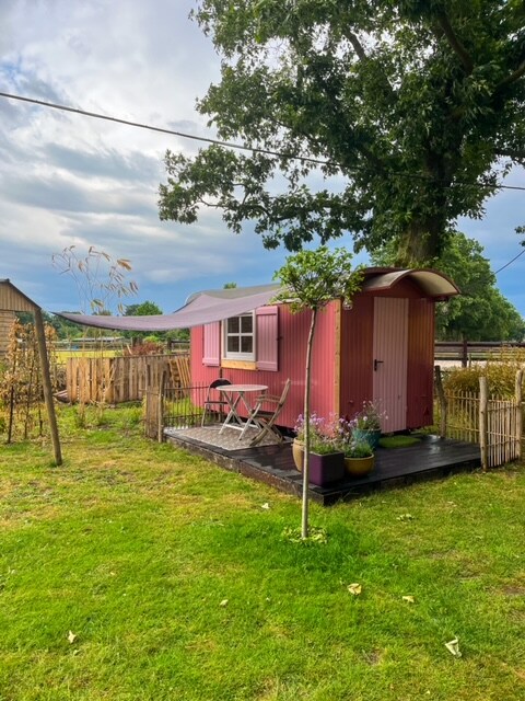 Ven a disfrutar de nuestro acogedor vagón de gitanos, que cuenta con su propio baño pequeño con inodoro, lavabo y una pequeña cabina de ducha. Hay una cama doble y dos sillas para relajarse. Aquí puedes desayunar y disfrutar de las hermosas vistas. Hay suficiente espacio de estacionamiento para nuestra casa. Además, nuestro bed and breakfast tiene 4 habitaciones en la parte trasera de nuestra casa. Vivimos en medio de la zona de Maasheggen, donde se puede ir en bicicleta y caminar.