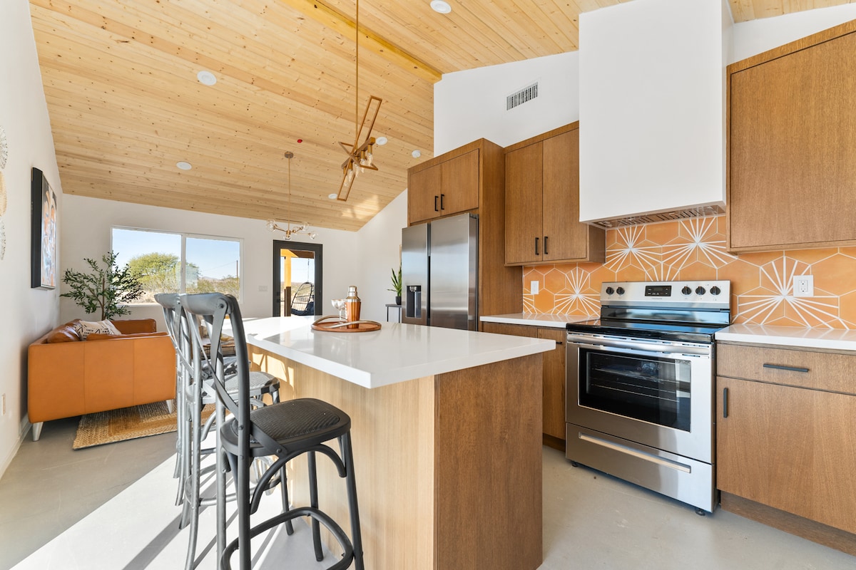 Impresionantes vistas al desierto te esperan en el nuevo Stargazer Getaway. Un elegante refugio recientemente renovado de 1800 pies cuadrados elegante en 5 acres de terreno. Perfecto para viajeros solitarios, parejas, amigos o familias. Siéntate junto a la fogata, descansa en las hamacas, disfruta de la increíble piscina de contenedores de envío con vistas a la montaña o diviértete en nuestra nueva sala de juegos. ¡Te esperan serenidad y aislamiento!