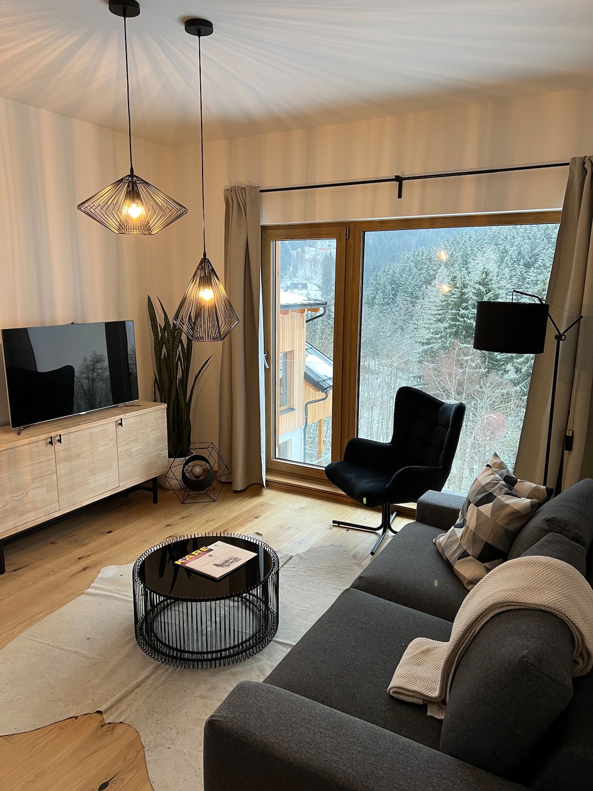 RESERVA 7 NOCHES y PAGA SOLO por 6 - 15 % de descuento para estancias de toda la semana Panorama Lofts Pec ofrece impresionantes vistas a la montaña gracias a las enormes paredes de vidrio de formato que te hacen sentir parte del entorno. Este nuevo edificio es uno de los puntos arquitectónicos más destacados de la ciudad. Está perfectamente situado entre el centro y las principales pistas de esquí. Ambos a poca distancia a pie. Llega a las pistas directamente con esquís o con una parada del autobús de esquí que para justo detrás de la casa. El centro de la ciudad está a solo 5 minutos a pie.